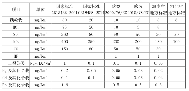 表1 生活垃圾焚燒煙氣排放標(biāo)準(zhǔn)限制