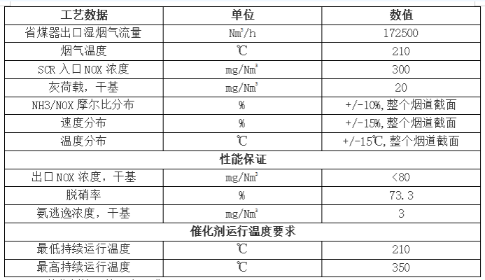 表3 蜂窩式催化劑運(yùn)行參數(shù)