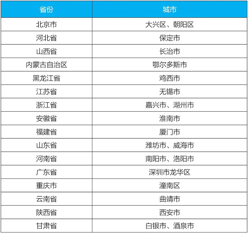 城市試點(diǎn)名單